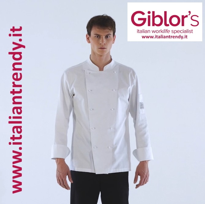– professionale e tradizionale giacca alla coreana da chef per uomo di colore bianco.
