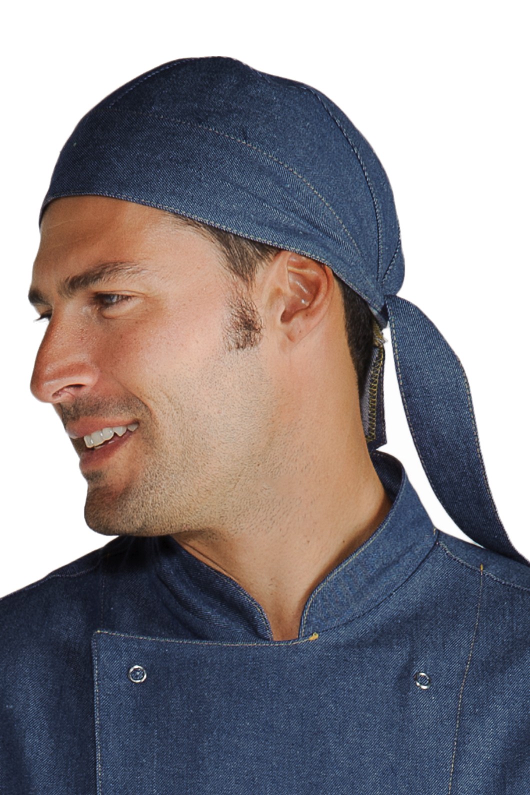 Bandana Per cuochi di Ristoranti E Pizzerie In Tinta Unita In chambray di Jeans o in Black jeans Di Cotone. Brand Isacco