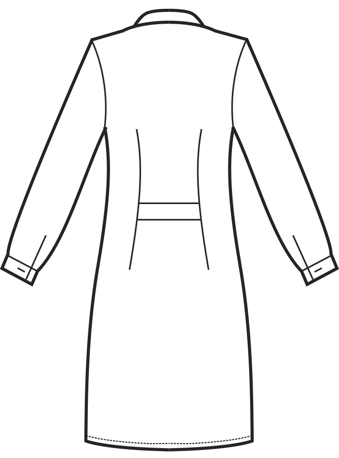 Martingala Posteriore: La martingala fissa posteriore leggermente sfianca il camice, offrendo un tocco di stile aggiuntivo. Questo dettaglio conferisce una vestibilità sagomata, garantendo comunque libertà di movimento.