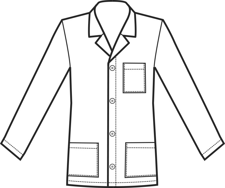Sono presenti due tasche inferiori, poste su ogni lato del camice ed un taschino, posto in alto, sul lato sinistro del petto.