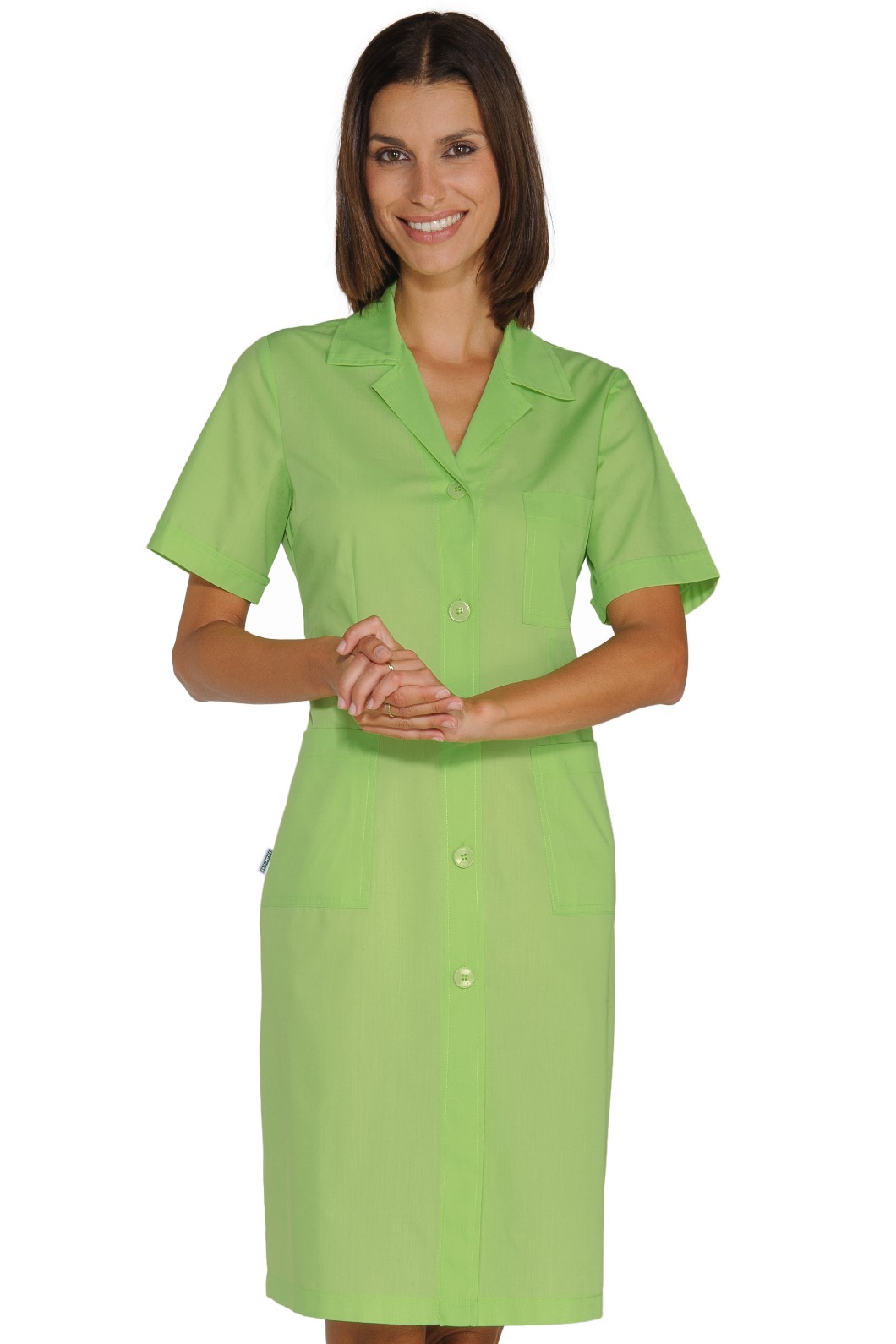 – l’allacciatura è centrale con bottoni classici in tinta con il colore del camice