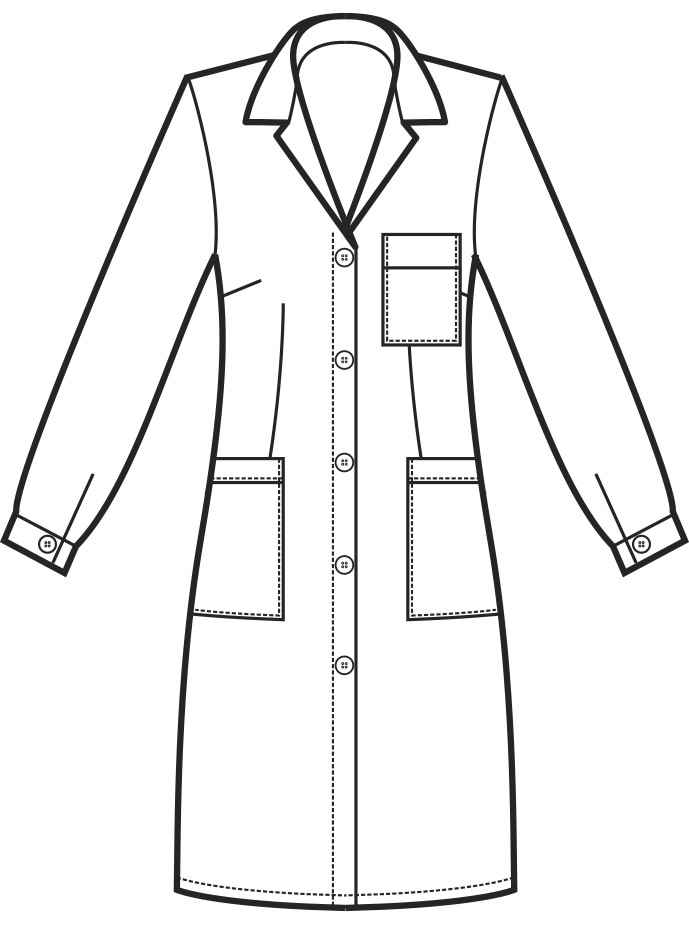 – l’allacciatura è centrale con bottoni classici in tinta con il colore del camice