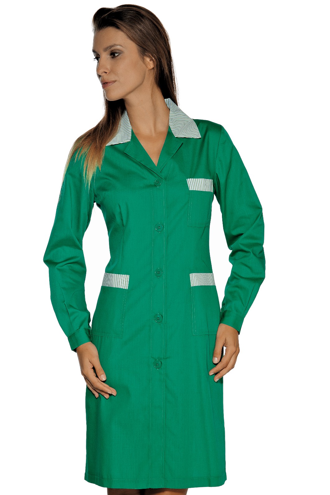 Camice da donna aperto centralmente e con chiusura con bottoni classici in tessuto Leggero e in Bicolore. manica lunga. Per personale di servizio settore alberghiero. Brand Isacco