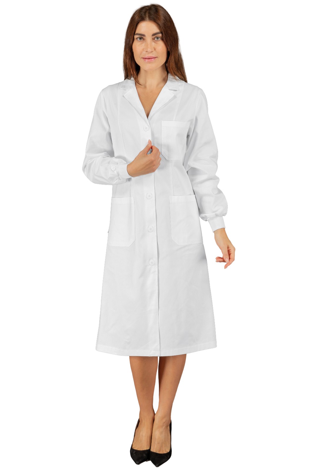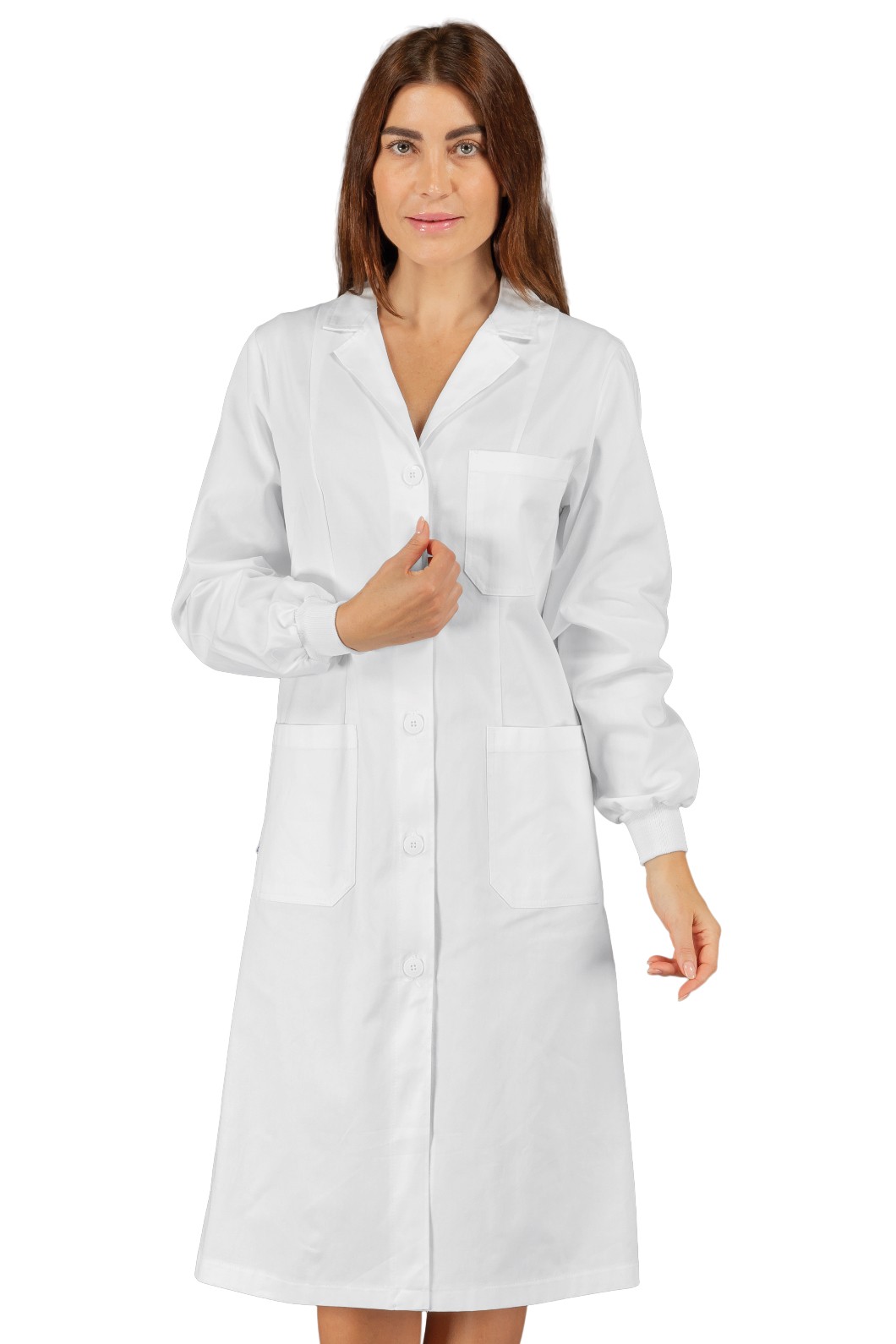 Il camice Vichy è un camice da donna a manica lunga bianco. Per settore medicale, estetico e sanitario. Ideale come divisa da lavoro per medico infermiere dottoressa, farmacista. Tasche e taschino al petto bottoni 4 fori.
