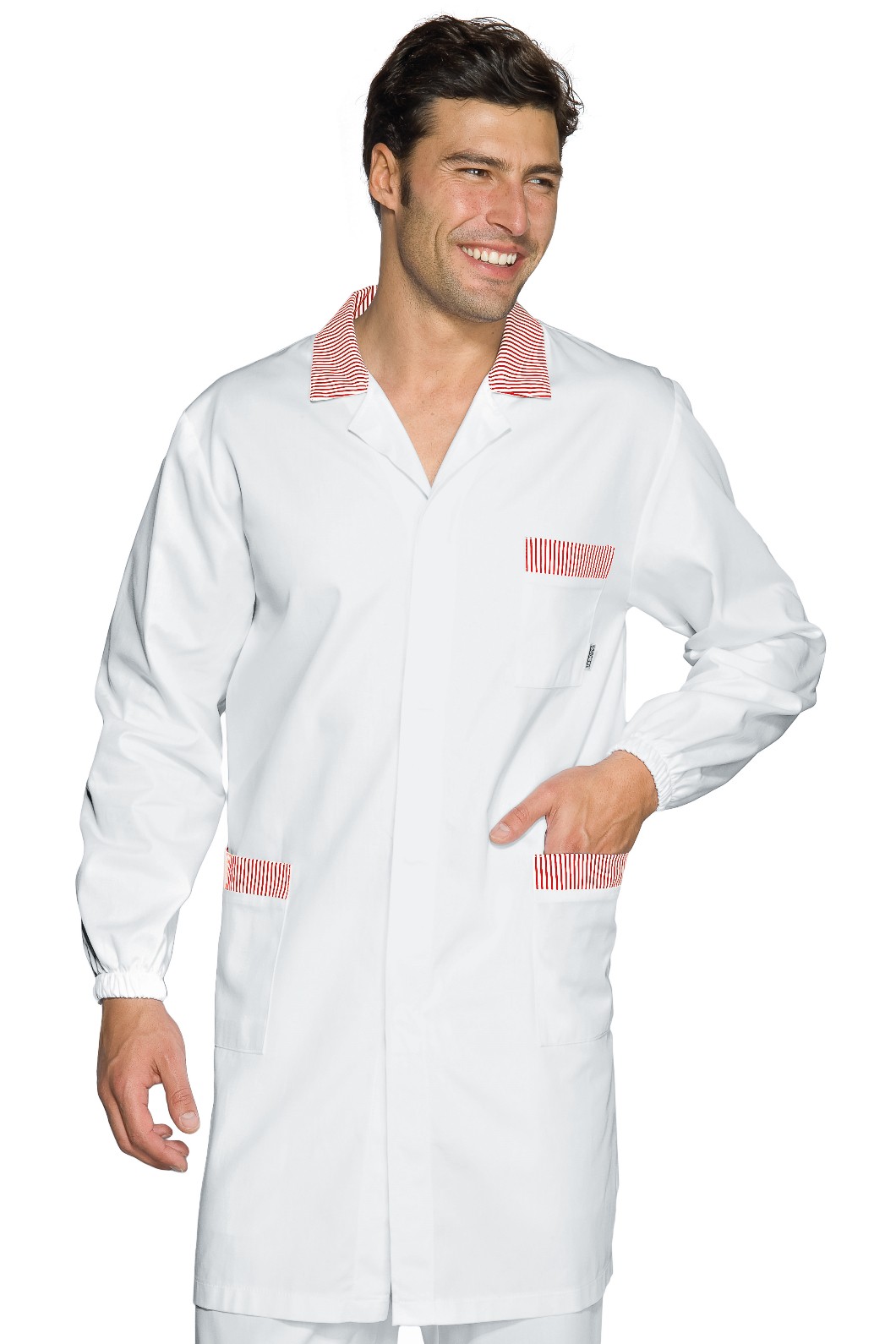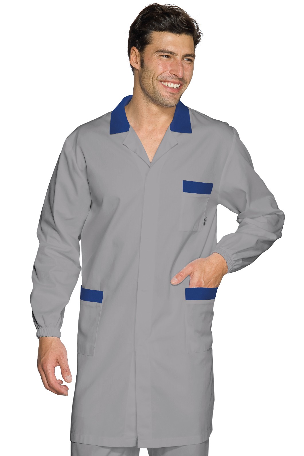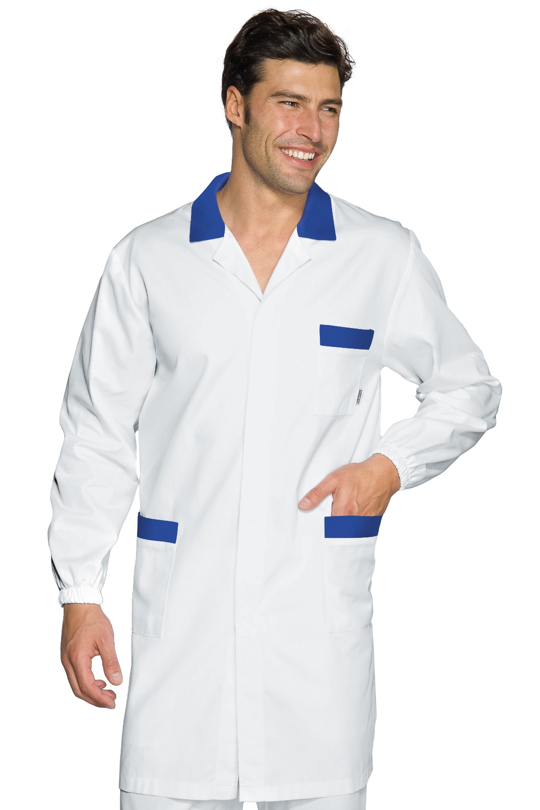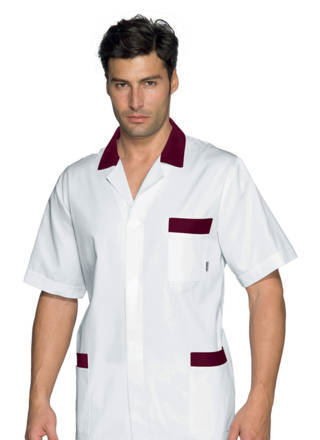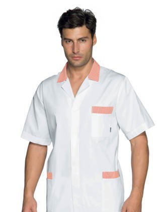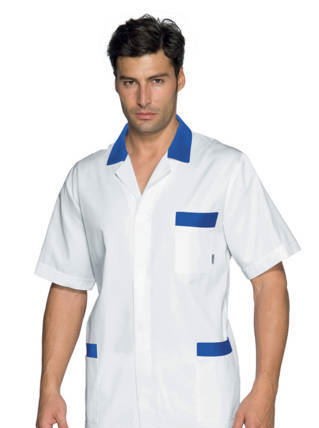 Camice professionale estivo relativamente lungo da uomo per l’uso più vario, si spazia dal uso medicale a quello più generico per Artigiani e Commercianti, per il suo peso leggero è stato venduto anche a Officine. Brand Isacco
