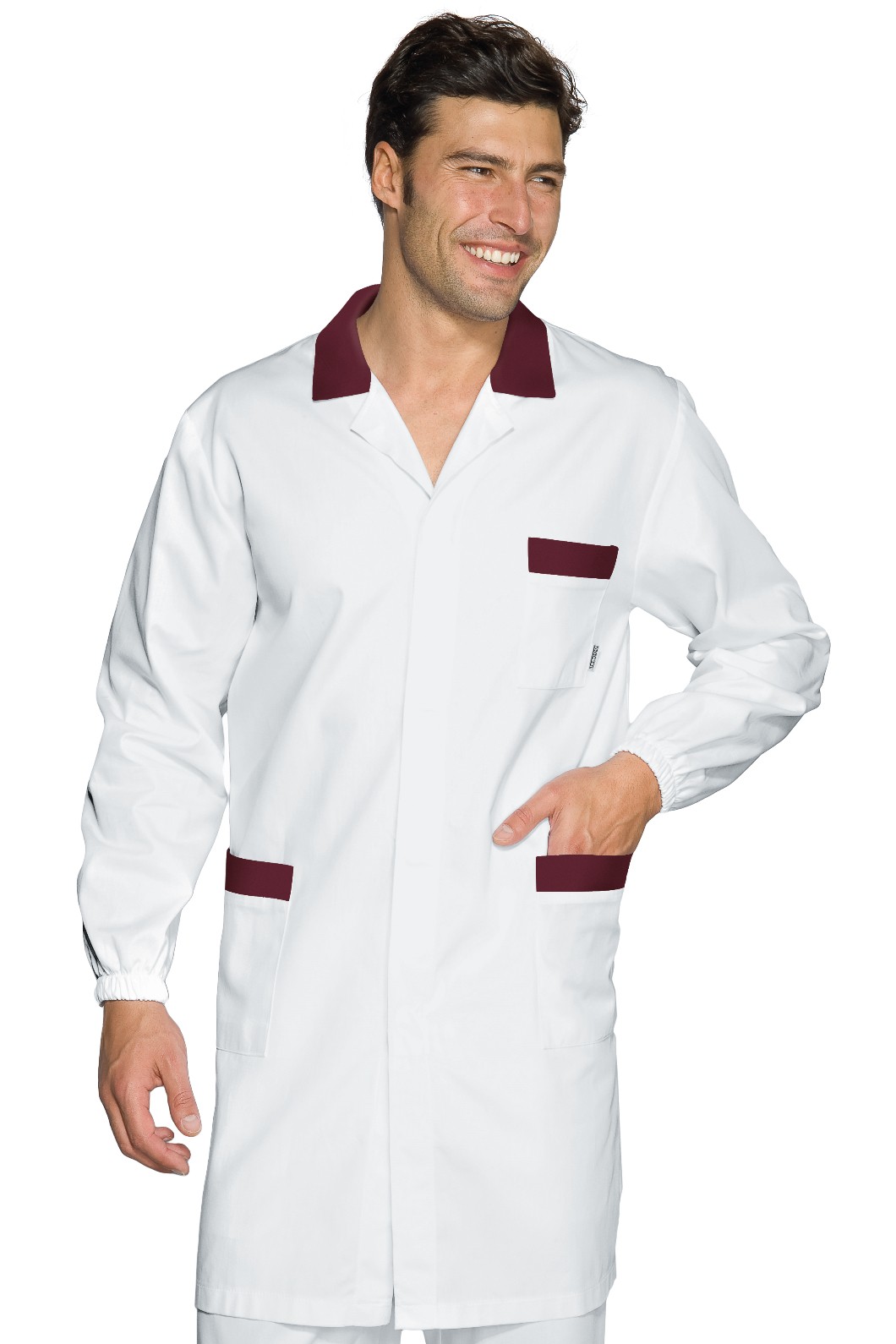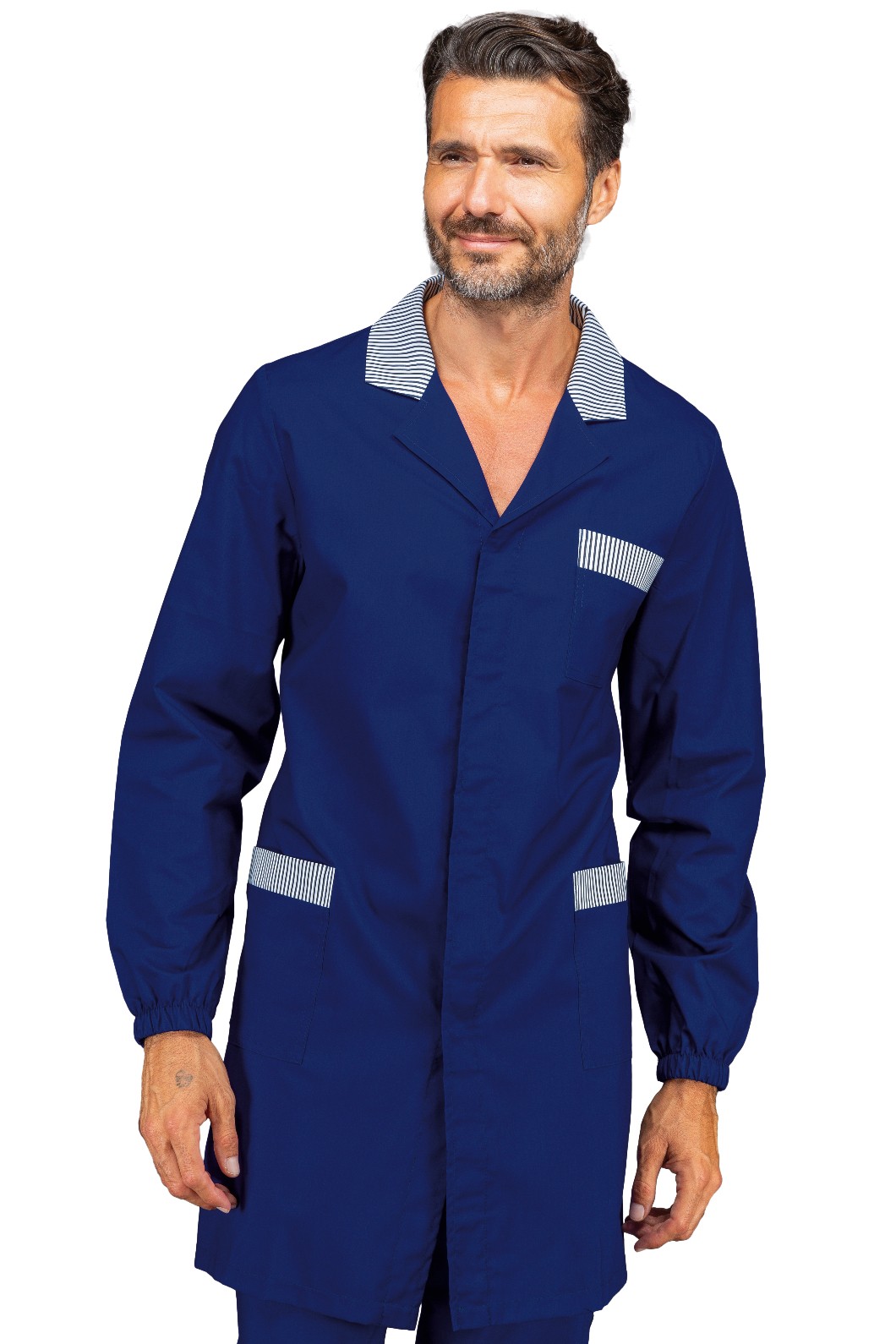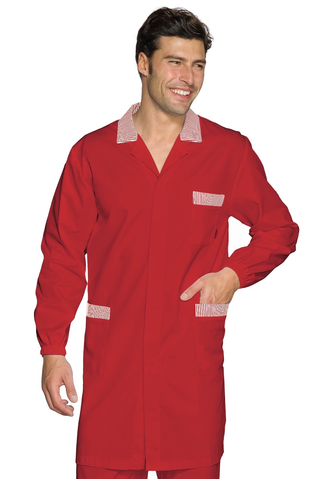 Camice professionale estivo relativamente lungo da uomo per l’uso più vario, si spazia dal uso medicale a quello più generico per Artigiani e Commercianti, per il suo peso leggero è stato venduto anche a Officine. Brand Isacco
