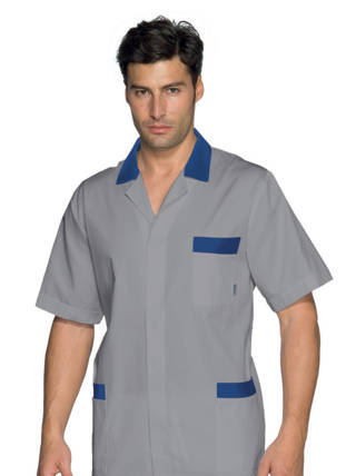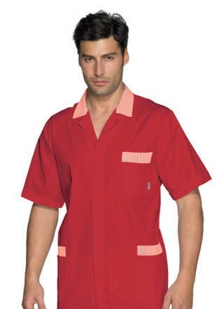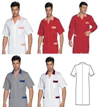 Camice Estivo Grigio, Bianco o Rosso Da Uomo Con Manica Corta Per Artigiani e Commercianti. Aticolo Toronto a Mezze Maniche Camice professionale estivo relativamente lungo da uomo per l’uso più vario, si spazia dal uso medicale a quello più generico per Artigiani e Commercianti, per il suo peso leggero è stato venduto anche a Officine. -Brand Isacco