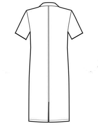Le maniche sono corte. Il colletto ha finiture in colore blu o bordeaux o blu cina o a righe Rosse, così come le due tasche applicate davanti e il taschino sul petto. I bottoni centrali sono nascosti da una doppia piega.