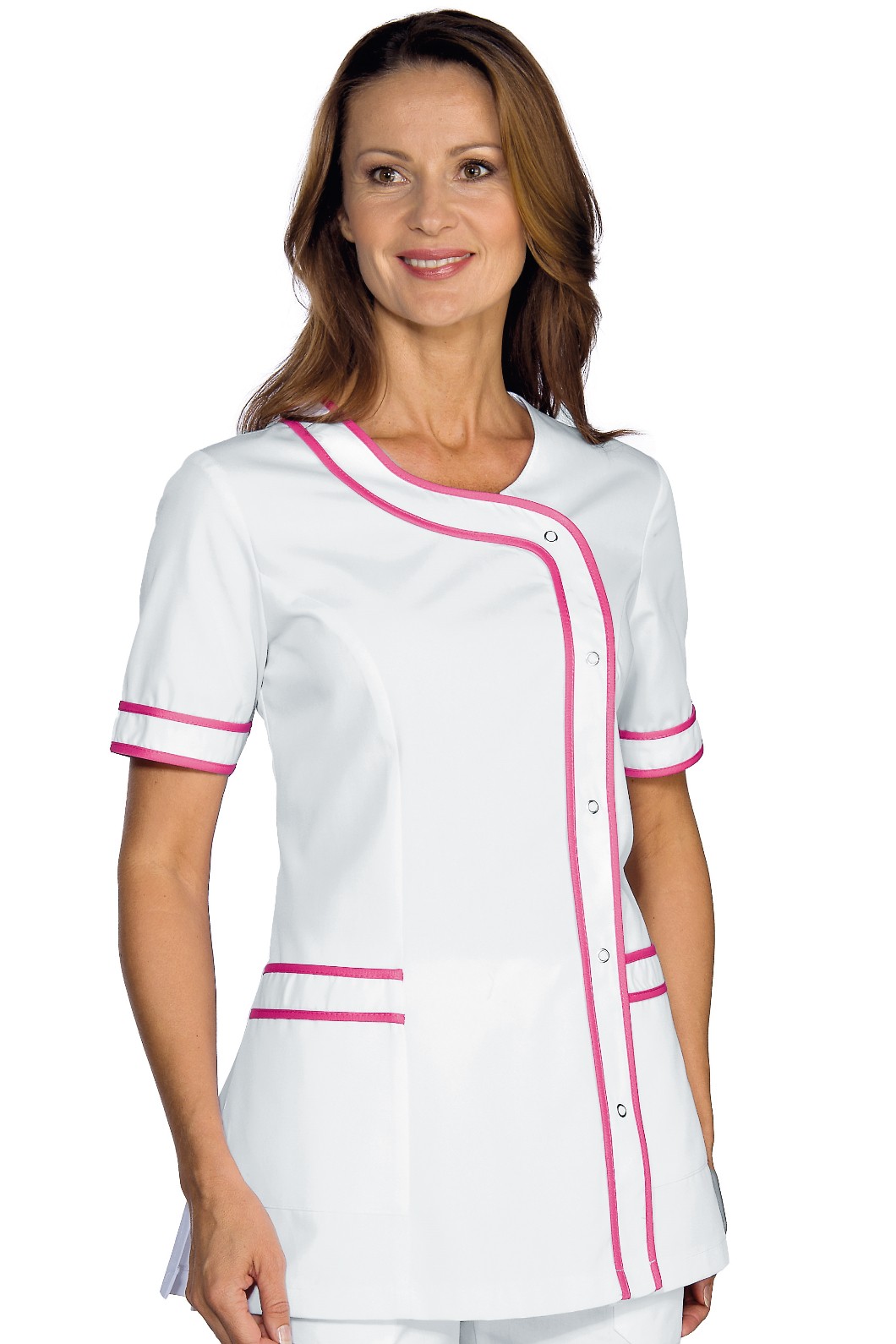 La Casacca Brasilia è camice corto da donna a mezza manica bianco. Per settore estetico sanitario e alimentare. Utilizzato come divisa da lavoro per aziende di servizi. Con bottoni a pressione, 2 tasche.