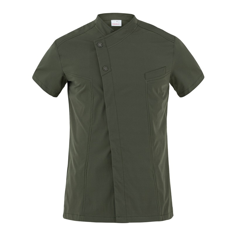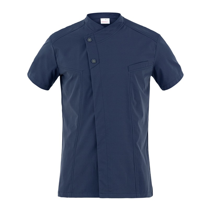 La casacca professionale da uomo Harry. con Maniche corte e collo alla coreana è ideale per il settore benessere, estetico e fisioterapia, progettata per garantire un’immagine coordinata e raffinata in qualsiasi ambiente di lavoro. Questa casacca ultraleggera è il vero simbolo del “wash&go”, grazie al tessuto innovativo G-TECH PRO.