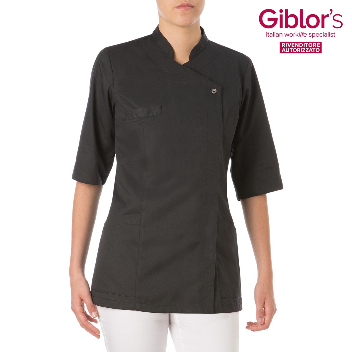 Casacca donna maniche corte allacciatura laterale per settore medicale articolo Mirka 16P02K833 Giblor’s Linea Top