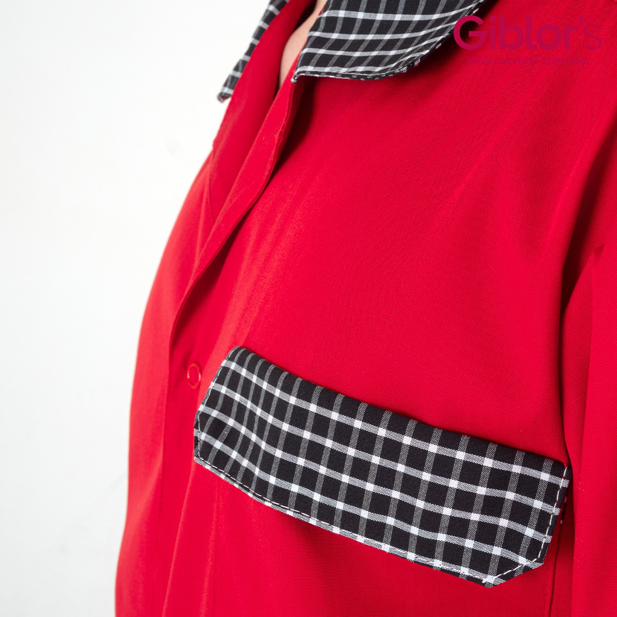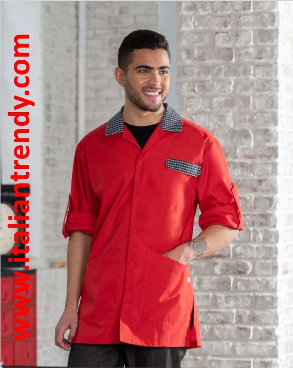 Proposta in un vivace colore rosso con contrasti quadrettati, questa casacca aggiunge un tocco di stile alle divise aziendali, mantenendo un aspetto professionale e curato.