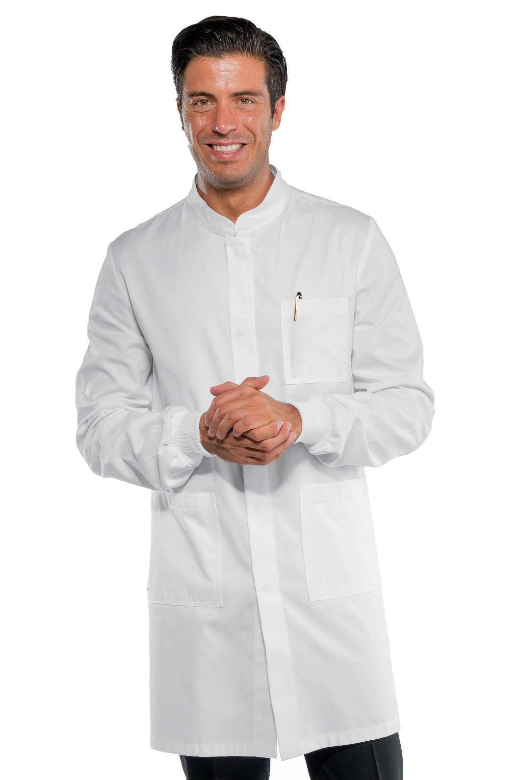 Camice Bianco In Cotone da Uomo per Medico con Collo alla Coreana a Manica Lunga, Corta e con il Polsino in Maglia Linea Slim Corta Codice: Dover Cotone