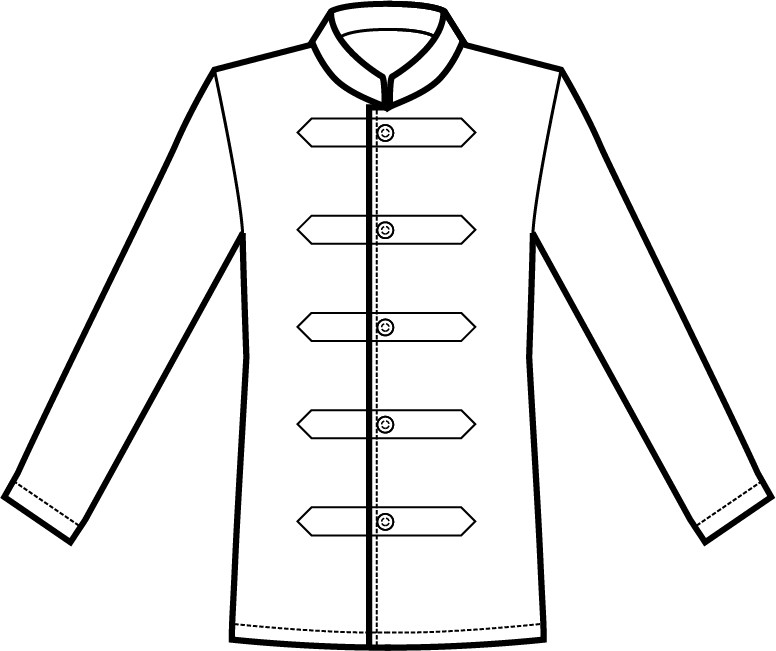 Giacca dalla linea classica ed elegante, proporzionata e comoda, la chiusura è centrale con bottoni classici e con collo alla coreana.