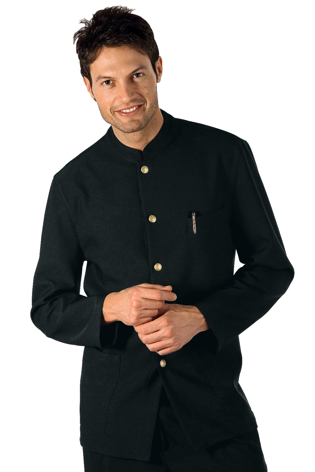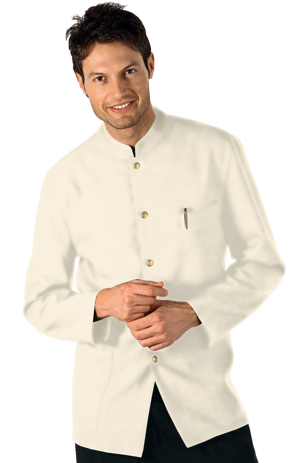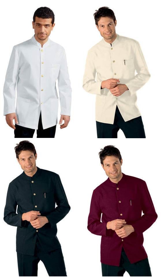 Giacca da Uomo alla Coreana per Divisa Alberghi Hotel o Domestici. Giacca da uomo con collo alla coreana Nera, Bordeaux, Bianca, Crema. articolo dal peso medio sfoderato e ingualcibile. Brand Isacco