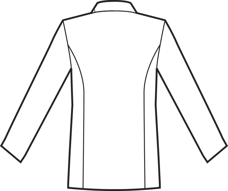 La giacca ha una linea classica ed elegante, proporzionata, la chiusura è centrale con collo alla coreana e bottoni dorati, le tasche sono applicate.