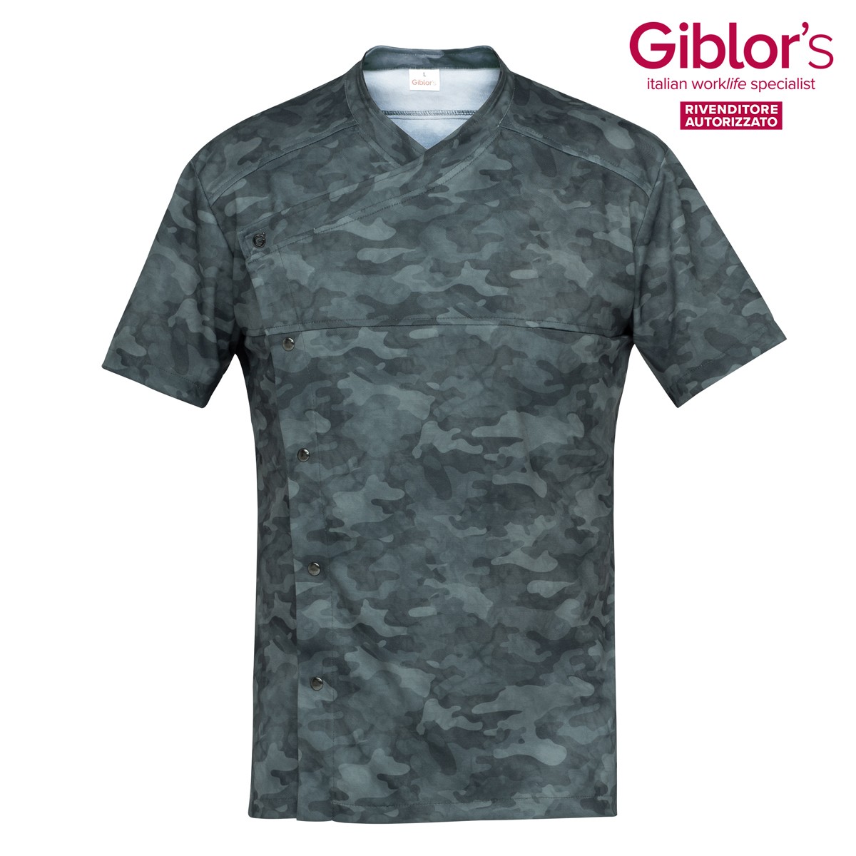 Casacca maniche corte da uomo, Fantasia camuflage blu, per il settore medicale Articolo 21P08G257 Lapo Giblor’S Linea Top