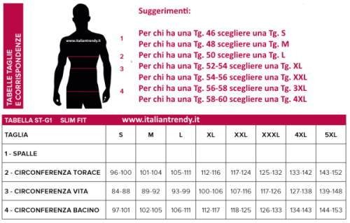 – Taglie disponibili: Tg. S/44-46, Tg. M/48, Tg. L/50, Tg. XL/52-54 Tg.XXL/54-56, Tg. 3XL/56-58, Tg. 4XL/58-60