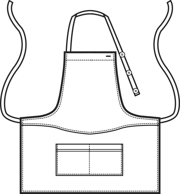 La linea è adatta a tutti i tipi di figura e la particolare fantasia stampata lo rende un grembiule giovane e grintoso.
