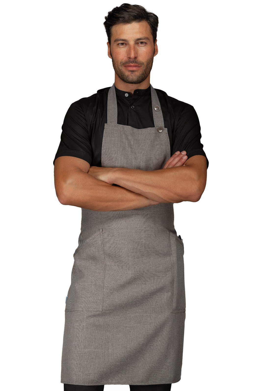 Il grembiule lungo unisex Beige Natural o Smoke è la scelta ideale per chi desidera unire funzionalità e stile in una divisa da lavoro professionale.