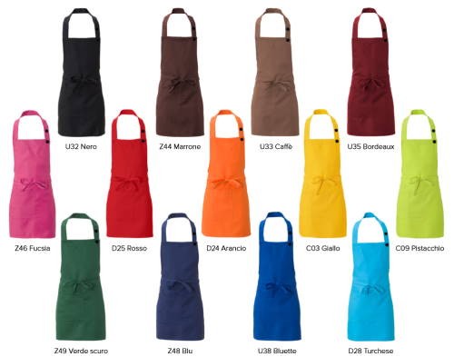 Elegante ed originale grembiulino da donna disponibile in vari colori, con pettorina in tinta, che dona maggiore protezione e praticità.