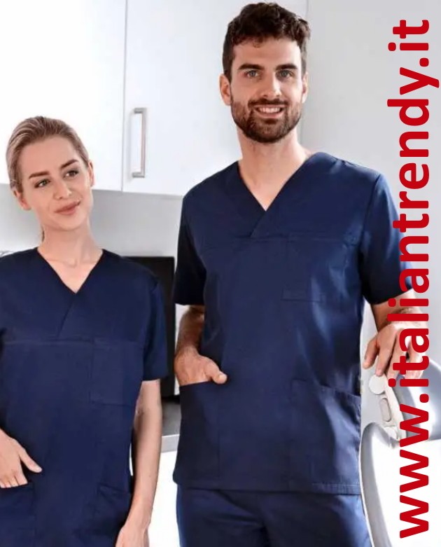 Il camice cortissimo o casacca, possiede una pratica scollatura a “V”.