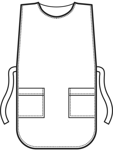 – grembiule dalla lunghezza media, con scollo tondo e con dei pratici laccetti sui fianchi